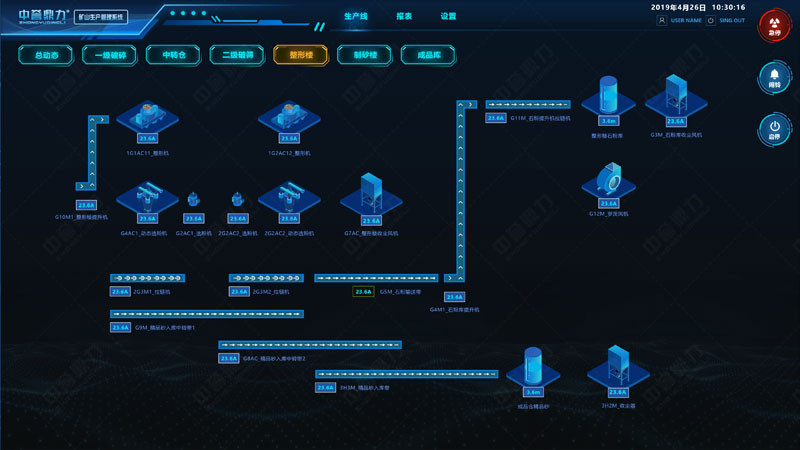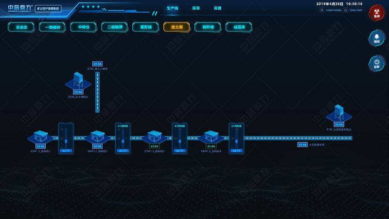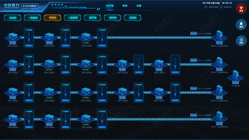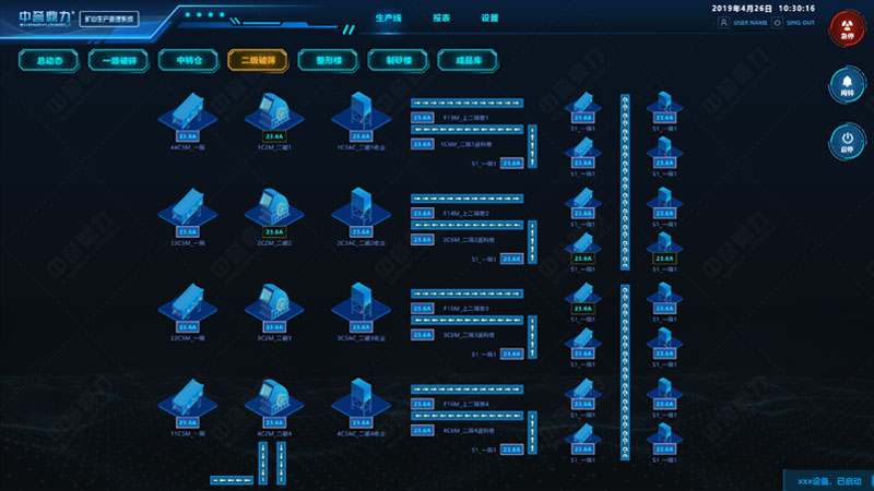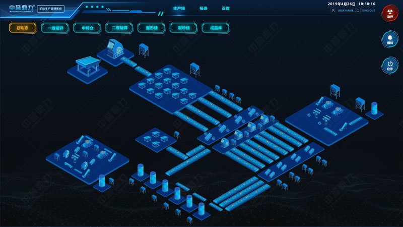中譽鼎力礦山生產管理系統(又叫DCS超級中控系統),是為實現礦山智能化、自動化生產而開發的可視化生產管理系統。