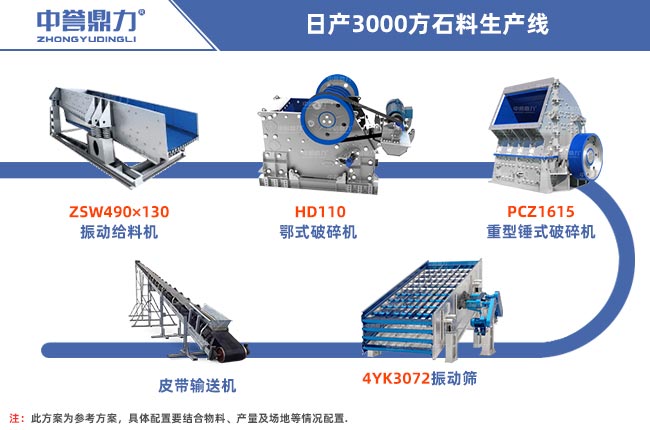 一破成型日產3000方石料生產線工藝圖