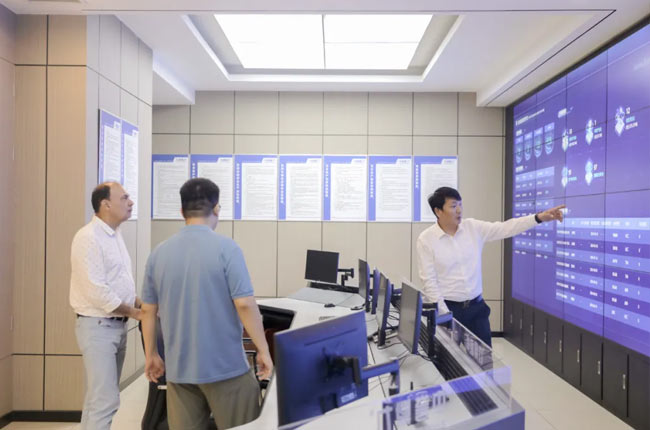 考察遠大環保四位一體大型建材項目現場,從項目中控室、級中控系統,到項目生產車間、主機設備等。