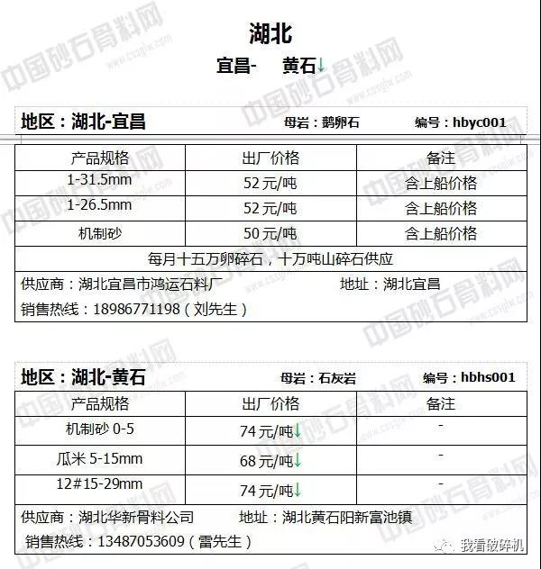 湖北地區:黃石砂石價格下調2元/噸。