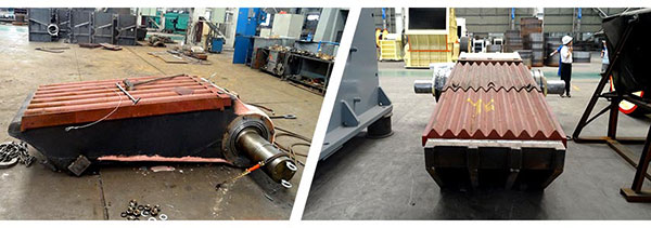 為了提高破碎成效,兩破碎板的表面都帶有縱向波紋,而且是凸凹相對,這樣,除了對巖石有壓碎影響外,還有彎曲影響,碎石機工作空間的兩側壁上也裝有錳鋼襯板,由于破碎板的磨損是不均勻的,尤其是挨近排料口的底部磨損較大,因此,常常把破碎板做成上下對稱的,以便底部磨損后,將其倒置而重復使用,大產能擺動顎式破碎機的破碎板是由很多塊組合而成,各塊都可以互換,這樣就可以拉長破碎板的使用時間。