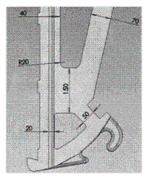 原始的機構尺寸如下圖1,分別對額板處、額板背面,肘板銜接處、出料口出的尺寸進行優化,為肘板的安系數,肘板銜接處的尺寸限尺寸定為:Xmin=50毫米,其它幾個尺寸分別根據邊界條件進行優化,通過6次迭代,取得優化后的結構尺寸如下圖2。