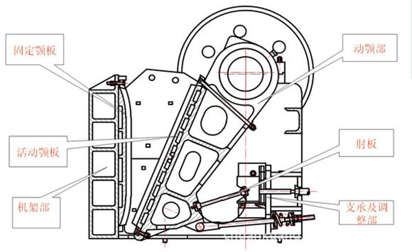 破碎機工作時,電動機轉動,通過三角皮帶、皮帶輪帶動偏心軸,使動顎按照已調整好的軌跡進行運動,活動顎板對固定鄂板也作周期性的擺動,當動顎板靠近時,物料在兩顎板間被擠壓、劈裂和彎曲破碎。當動顎板離開時,破碎腔內下部已破碎到小于排料口的物料,靠自重作用自動落下,位于破碎腔上部的物料,還未破碎到小于排料口尺寸,只是隨著排料而下降距離,直到動顎再次靠迫固定顎板時,破碎腔內已下降的物料再次受到繼續擠壓而破碎;如此進行下去,直到給入破碎腔內部物料從排料口排出為止,終得到理想的物料。