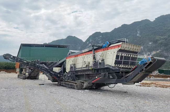 履帶篩分機構造部分包括緩沖料倉、振動篩、皮帶機、檢修走廊、液壓裝置、分料斗、除鐵器、行走履帶等組成。