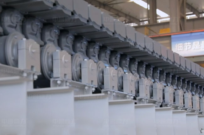 中譽鼎力板鏈式給料機鏈板采用強度大、硬度高、韌性好的合金鋼壓制而成,采用的是坦克鏈,安裝維修方便,工作噪聲小,可高速運動,能很好匹配變頻裝置調節喂料速度。