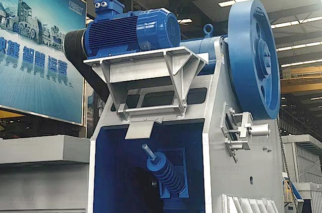 顎破機的動、靜顎板、重型偏心軸、大型軸承均采用高錳鋼材料制造,元件不易磨損,使用時間比較持久。