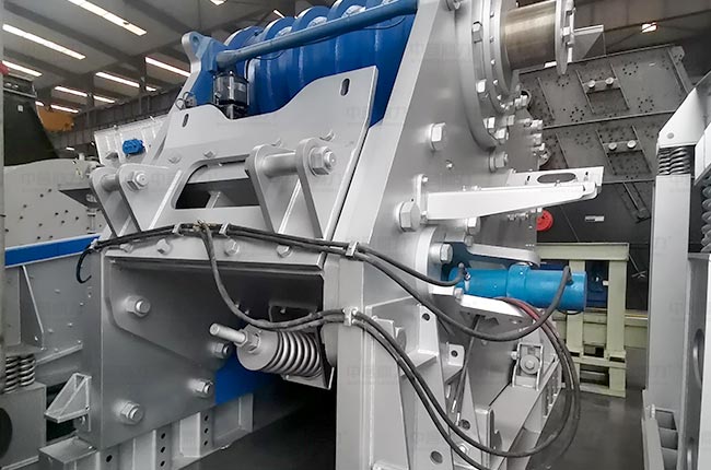 通過液壓雙楔塊調整裝置,實現對顎破機排料口大小進行調整,是通過改變楔塊厚度尺寸實現排料口的大小調節,實現了排料口的無級調節,減小了誤差,調整精度,并且操作更加省時、簡便。液壓油密閉設計,受外界的影響小,使用時間長。