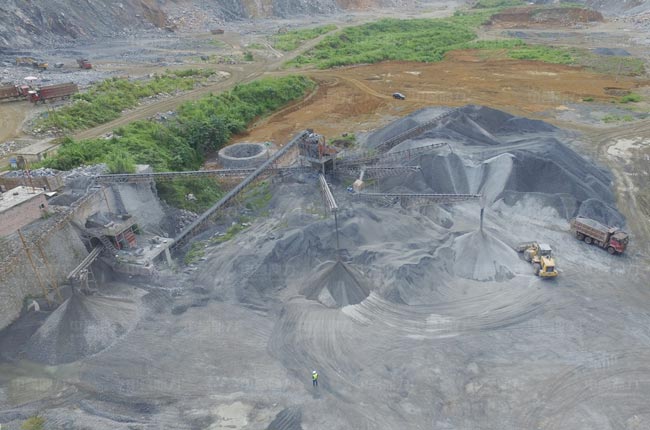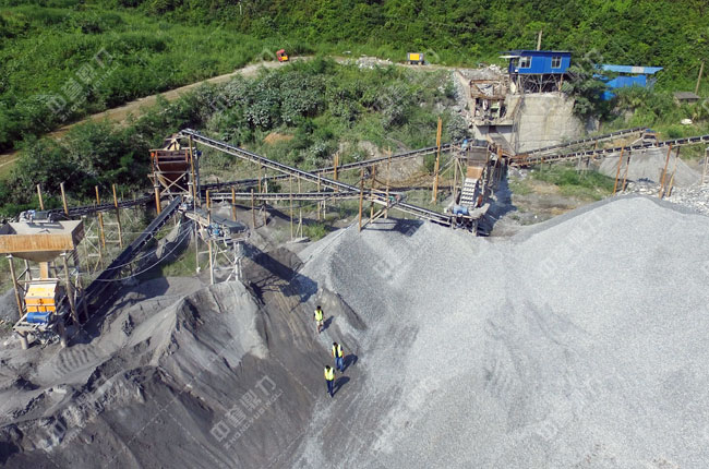 該生產線投產時間是2013年6月,主要生產0—30mm混合料、10—20、10—30mm的石子、瓜米石、石粉等石料,日產量可達3000噸,成品石料應用于水泥廠及混凝土攪拌站。