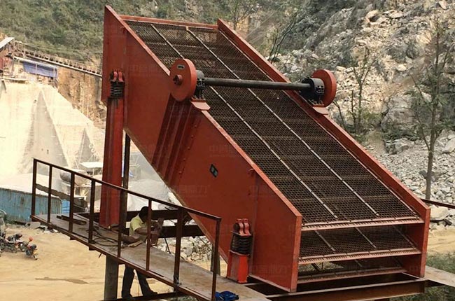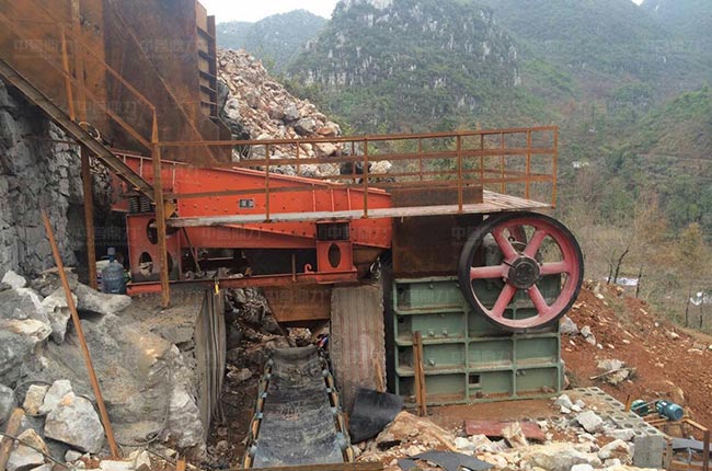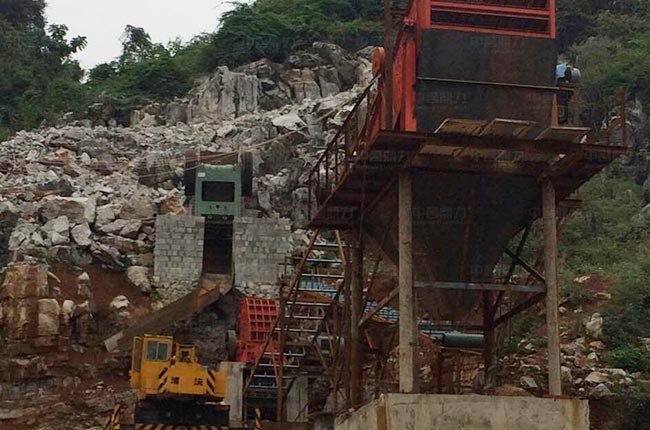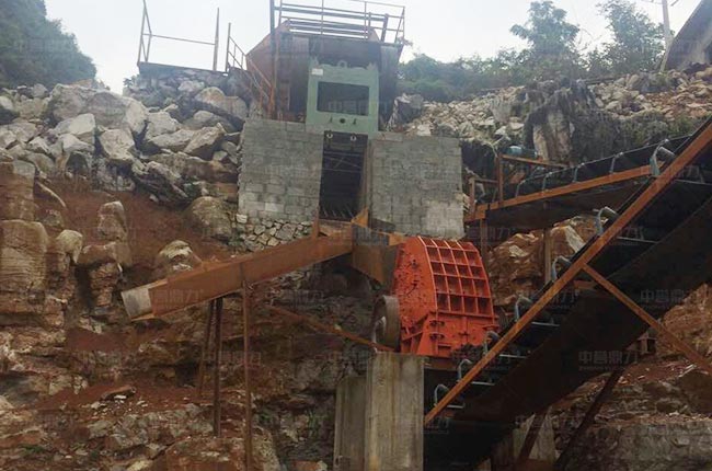 該項目位于廣西河池,選用時產100-160噸的PCZ1308重錘破碎機做二破使用,一臺4層YK2260振動篩用于分選4種不同規格的石料。