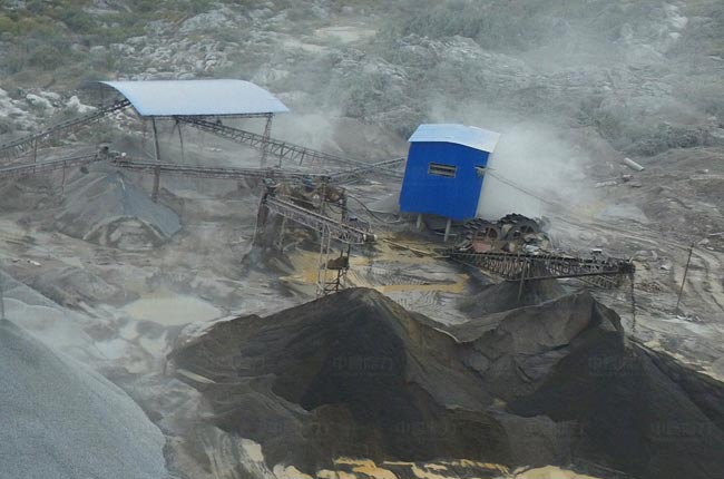 兩道篩分:PCZ重錘反擊式破碎機破碎后的石料,通過皮帶機送進頭道曬分機組進行篩分,會篩分出混合料,成品骨料及需要返回破碎機的石料;混合石料篩選通過二道篩機篩分,符合要求的通過成品皮帶機送至成品料堆;