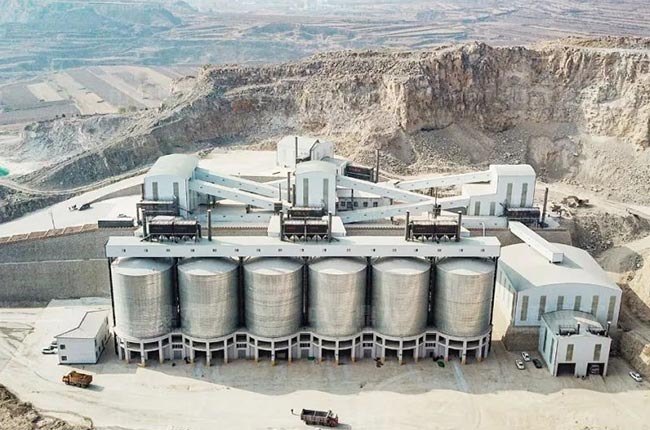 6、6大儲料罐,集中罐式儲存砂石骨料,倉罐下智能放料裝車;