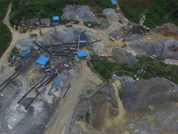 石頭生產線生產工藝流程如下:開采的礦石先由震動喂料機進料給顎破進行粗破,在破碎至得當細度后經由液壓圓錐進行規格整形,之后由立軸沖擊碎石機又一次進行破碎,再經由篩機篩選分級出成品,其成品的規格由碎石設備的型號和篩機的型號。