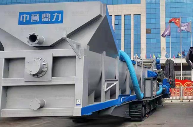 河南中譽鼎力廠家研發制造的移動式螺旋洗砂機也叫螺旋洗石機,配置有螺旋洗砂機、脫水設備、折疊皮帶機、泵、電控及液壓系統,采用可移動履帶底盤,能適用各種復雜的環境。
