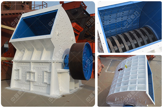 2、重型錘式破碎機又稱重錘破,是在普通重型錘式破碎機、反擊式破碎機、立軸錘式破碎機及各種用錘頭(板錘)對石料進行打擊破碎的機械原理上,經過優化設計后,制造生產出了破碎機械產品,改變了以篦條控制出料顆粒大小的方法,減少了錘頭在破碎腔內的磨損,使錘頭的壽命提高4—6倍。實現了破碎技術的重大,真正達到了事半功倍的效果。