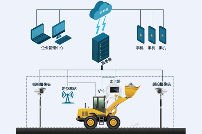 鄭州市小石頭信息技術有限公司“鏟車裝車抓拍系統”采用無線AP、基準站、鏟車定位終端、鏟車數據采集終端,通過鏟車進行裝車。"料倉一卡通管理系統"需要持卡裝車,整體流程中需要司磅員記錄車號、物料類型等信息。